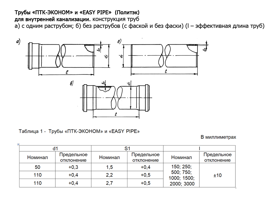 Внутренняя и наружная канализация - Характеристики