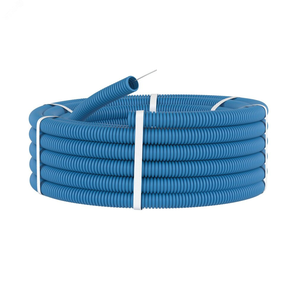 Полное описание товара Труба гофрированная ППЛ 25 мм с протяжкой тяжелая синяя (50м) (DKC) 11525