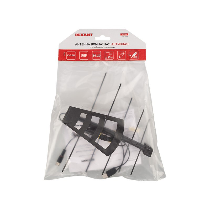 Полное описание товара ТВ антенна комнатная Активная для цифрового телевидения DVB-T2 RX-269 USB, (REXANT) 34-0269