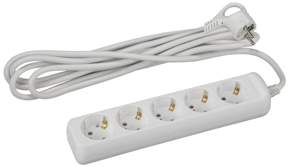 Удлинитель электрический Эра U-5e-5m-3x1 с заземлением, ПВС, 3x1мм2, 5 розеток, 5 м. Рассчитан на максимальную мощность 16А/3500 Вт. Удлинитель Эра станет Вашим надежным помощником, если Ваши любимые электроприборы находятся далеко от розеток. Провод в удлинителях Эра сделан из 100% меди, что делает его абсолютно пожаробезопасным. Корпус выполнен из ударопрочного и негорючего пластика (полипропилен). В моделях с заземлением у вилки есть кольцо для удобного извлечения из розетки. Модель удлинителя на 16А позволяет подключить мощные бытовые приборы общей нагрузкой до 3500Вт. Не бойтесь включить чайник, обогреватель, микроволновку или другие электроприборы. Толстый провод удлинителя Эра гарантирует полную безопасность. Дизайн удлинителя разработан в России командой Эра Style.