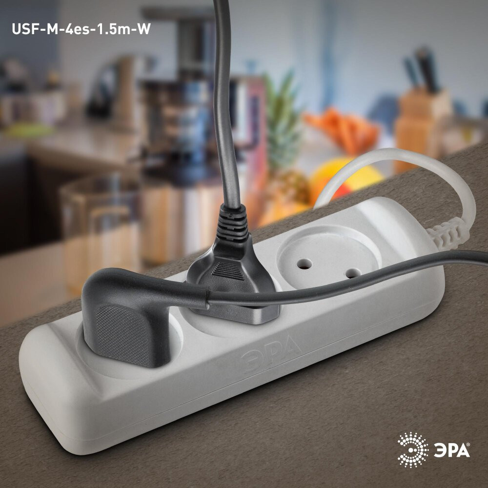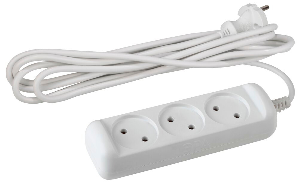 Удлинитель бытовой ЭРА. Серия UX для подключения маломощных устройств до 1300Вт. Максимальная мощность 6 А/ 1300 Вт. Без заземления. Провод ПВС.