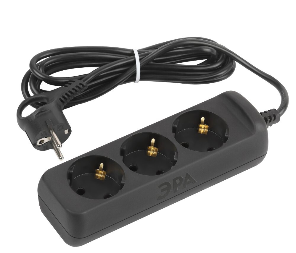 Удлинитель электрический Эра UX-3e-5m-B с заземлением, черный, 3 розетки. Провод ПВС, 3x0,75мм2, 5 м. Рассчитан на максимальную мощность 10А/2200 Вт. Удлинитель Эра станет Вашим надежным помощником, если Ваши любимые электроприборы находятся далеко от розеток. Провод в удлинителях Эра сделан из 100% меди, что делает его абсолютно пожаробезопасным. Корпус выполнен из ударопрочного и негорючего пластика (полипропилен). Вилка обеспечена кольцом для удобного извлечения ее из розетки. Модель удлинителя на 10А позволяет подключить бытовые приборы общей нагрузкой до 2200Вт. Дизайн удлинителя разработан в России командой Эра Style.