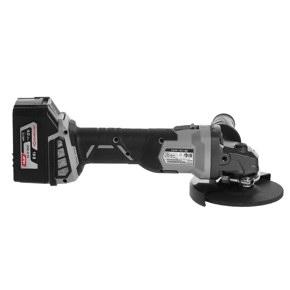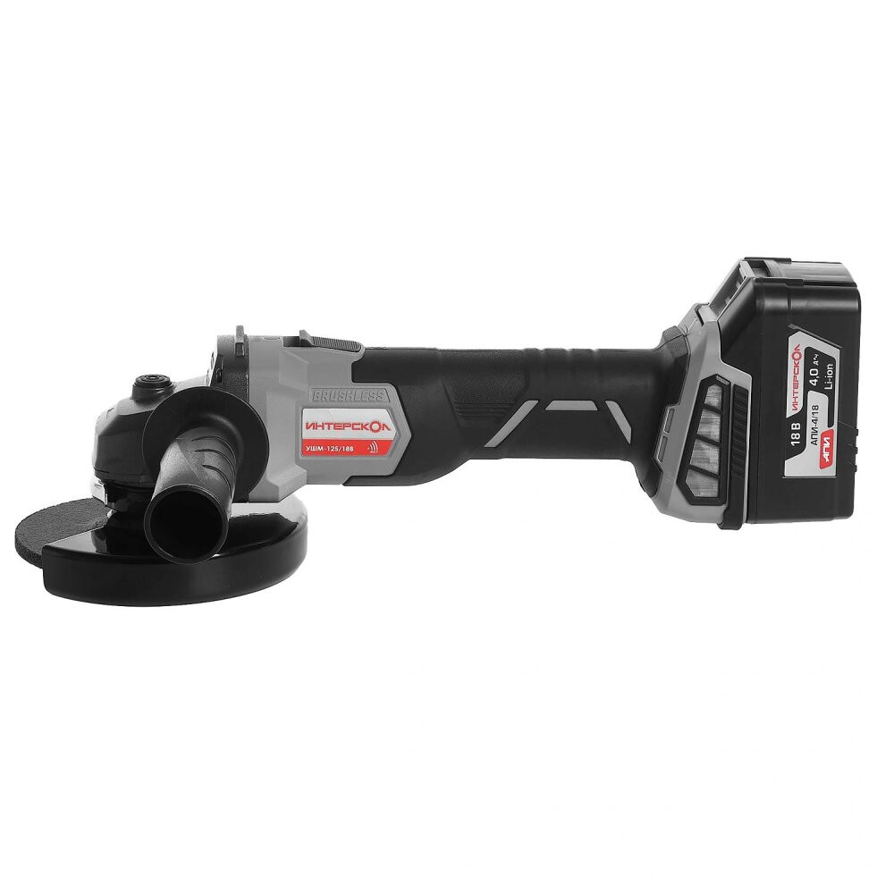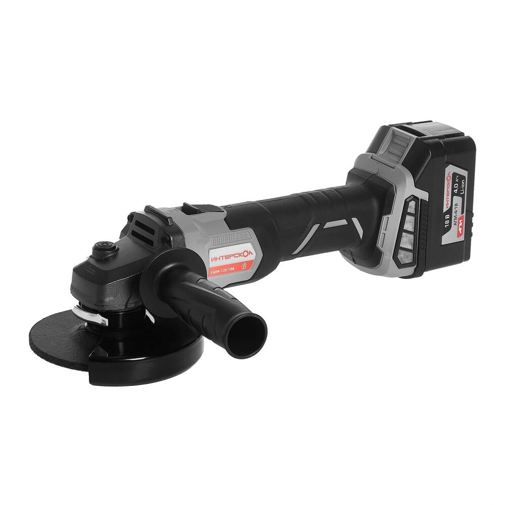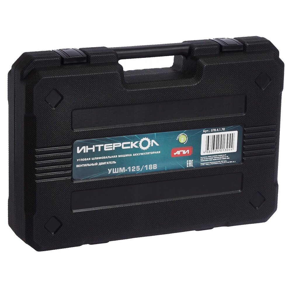 Угловая шлифмашина бесщеточная аккумуляторная УШМ-125/18В Li-ion АПИ (кейс, 1 аккум. 4Ач, ЗУ) (Интерскол) 578.4.1.70
