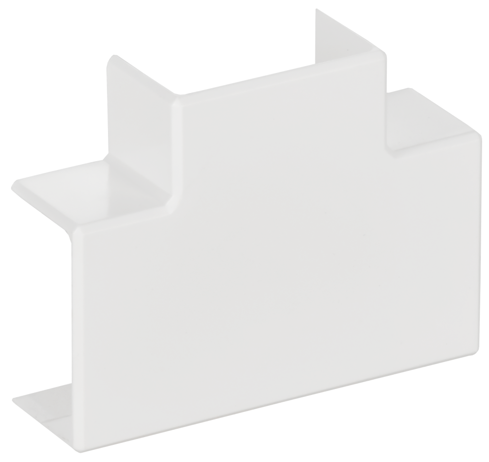 Угол Т-образный позволяет выполнить Т-образное соединение двух кабель-каналов, обеспечивает степень защиты всей системы IP40, улучшает внешний вид, закрывая место разреза. Т-образный угол закрепляется на корпусе кабель-канала простым защелкиванием. Цвет: белый.