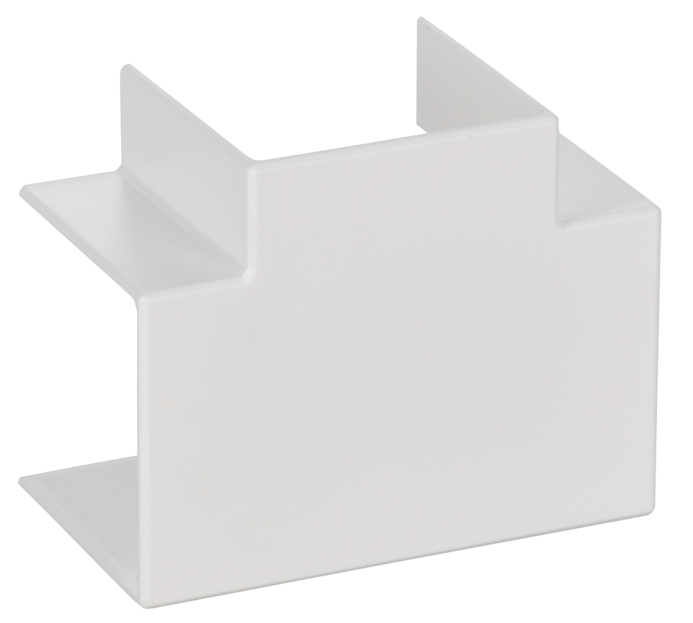 Угол Т-образный позволяет выполнить Т-образное соединение двух кабель-каналов, обеспечивает степень защиты всей системы IP40, улучшает внешний вид, закрывая место разреза. Т-образный угол закрепляется на корпусе кабель-канала простым защелкиванием. Цвет: белый.