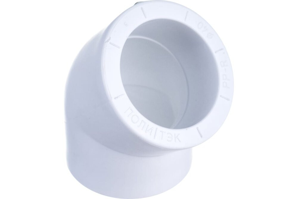 Угольник 40 мм 45 град., полипропиленовый PPR, белый (Политэк) 9400004045