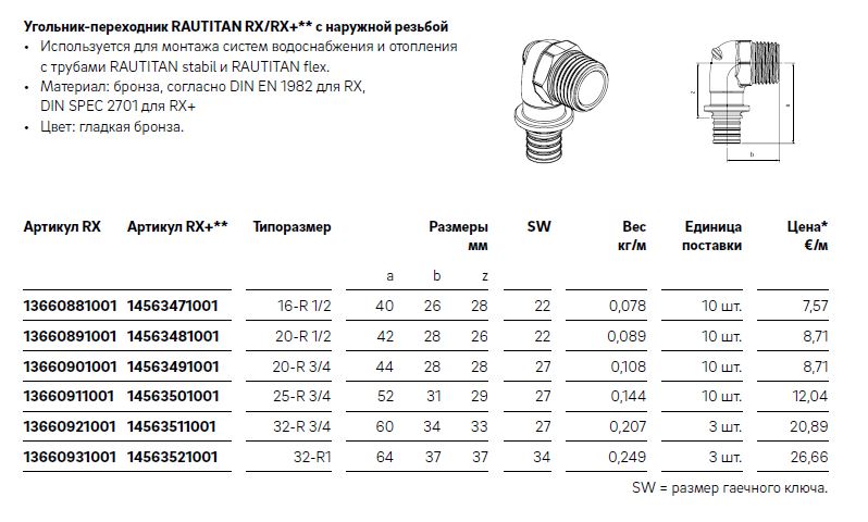 Полное описание товара Угольник НР 20x1/2 переходной, RX++ (РЕХАУ) 14563481001