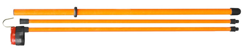 Однополюсный указатель высокого напряжения бесконтактный универсальный УВНБУ-35-220 (Электроприбор) с помощью специального соединения крепится к изолирующей штанге. Резиновая оболочка защищает прибор от повреждений при ударах. Устройство УВНБУ-35-220 имеет светозвуковое оповещение о приближении к частям электроустановок, находящимся под напряжением. В комплекте с прибором поставляются изолирующие штанги.