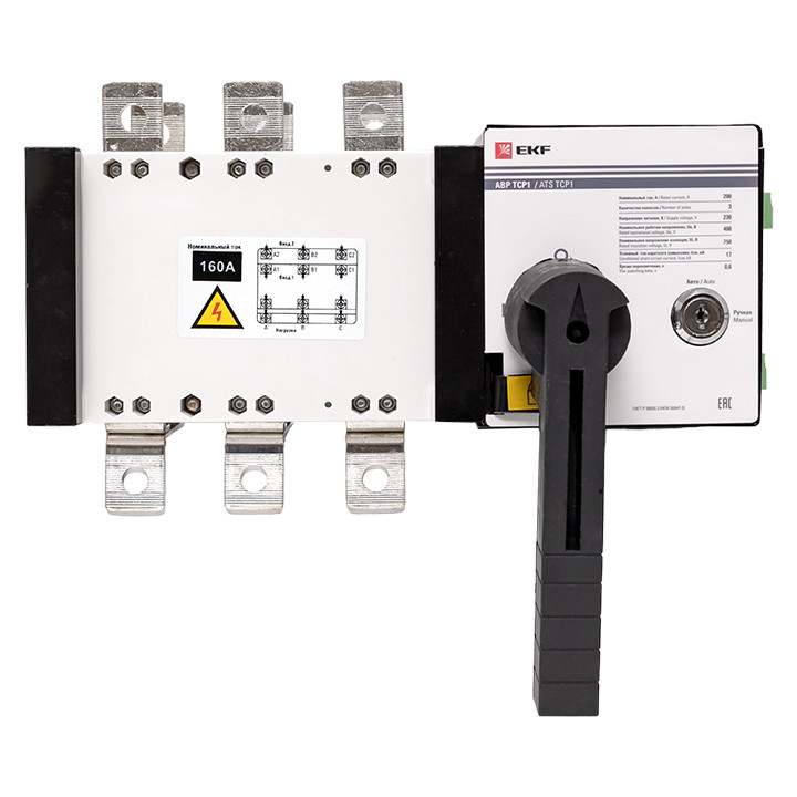 Полное описание товара Устройство автоматического ввода резерва АВР ТСP1 160A 3р 230В (EKF) ats-tsr1-160A-3p-pro