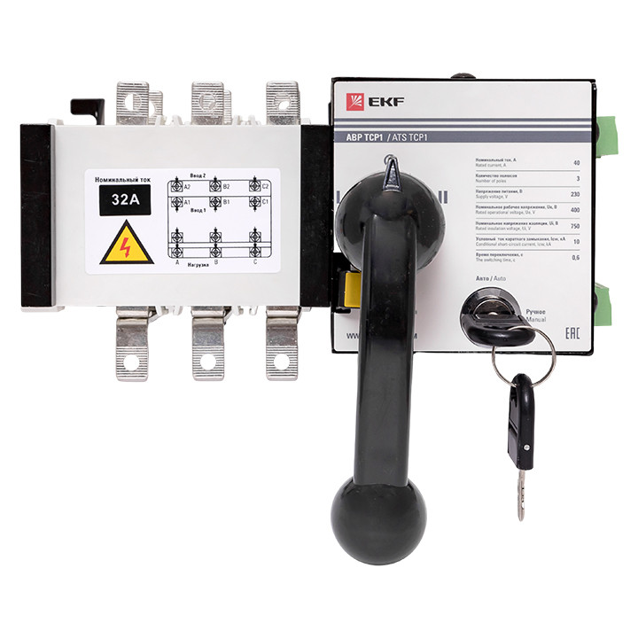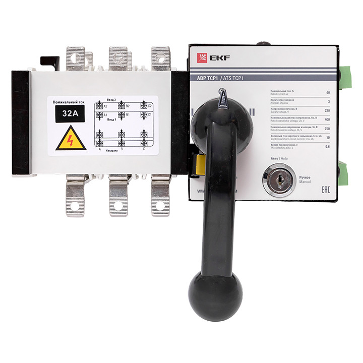 Полное описание товара Устройство автоматического ввода резерва АВР ТСP1 32A 3р 230В (EKF) ats-tsr1-32A-3p-pro