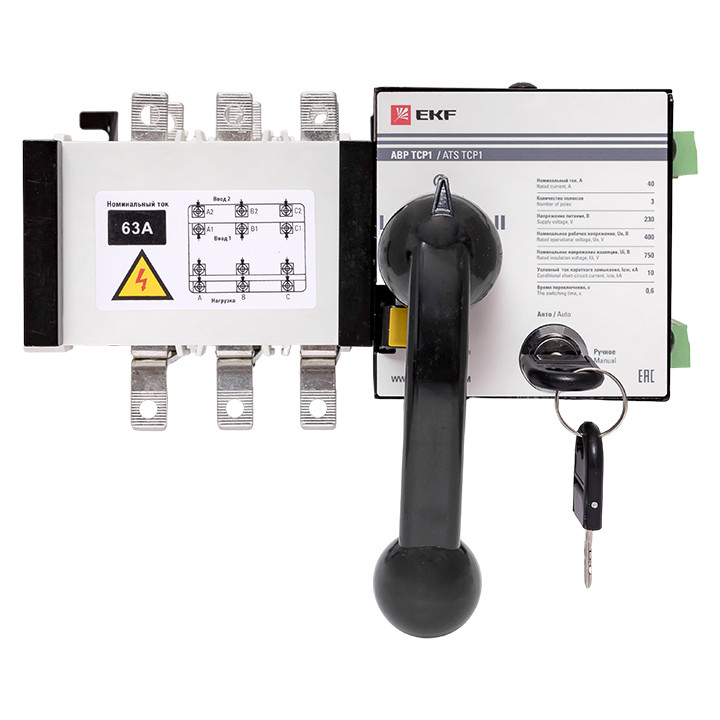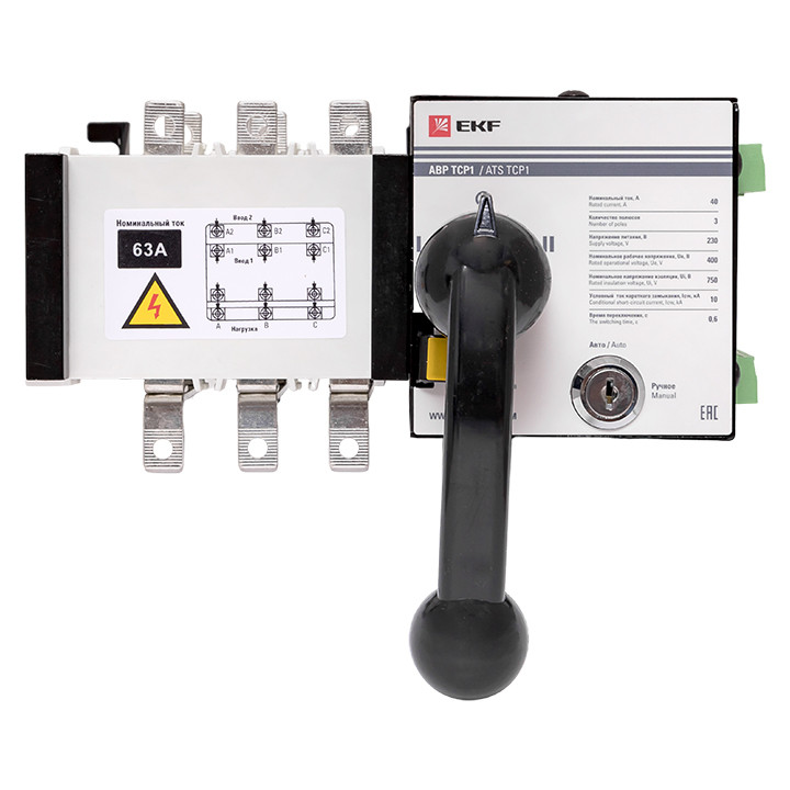 Полное описание товара Устройство автоматического ввода резерва АВР ТСP1 63A 3р 230В (EKF) ats-tsr1-63A-3p-pro