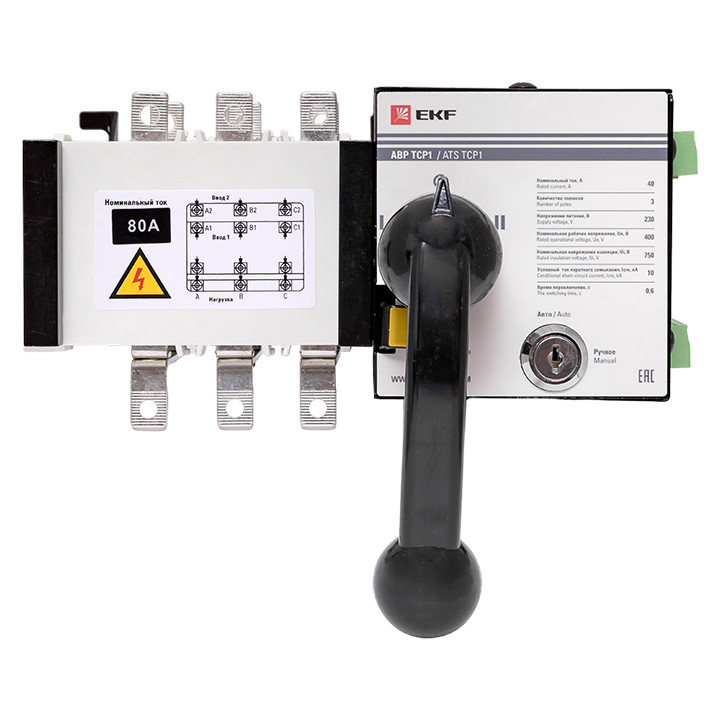 Полное описание товара Устройство автоматического ввода резерва АВР ТСP1 80A 3р 230В (EKF) ats-tsr1-80A-3p-pro
