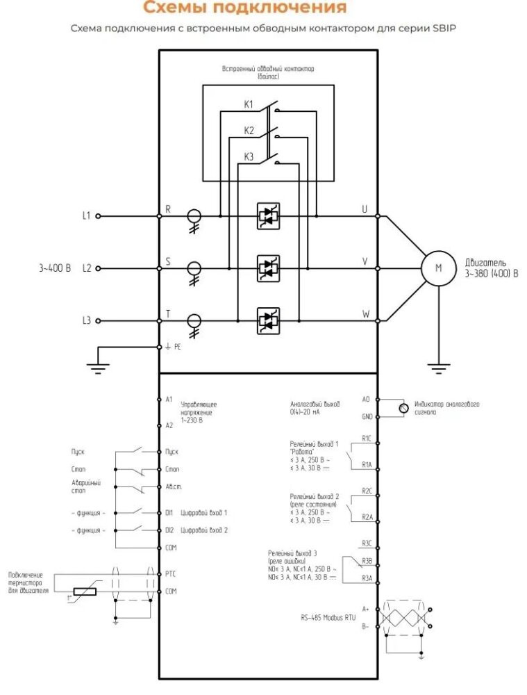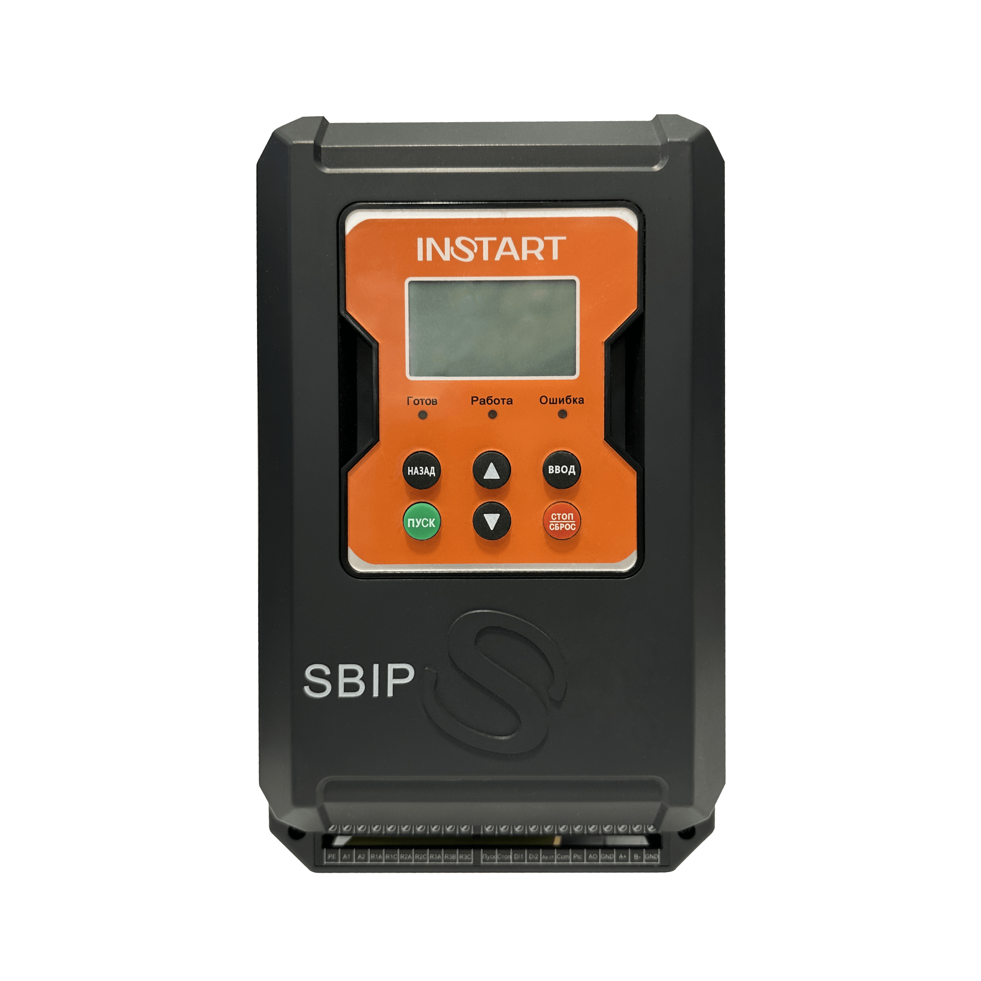 Полное описание товара Устройство плавного пуска УПП 37 кВт 74A, 3 342-440 В, IP00, Modbus RTU, съемная панель, русскоязычное меню, встроенный обводной контактор (Instart) SBIP-37/74-04
