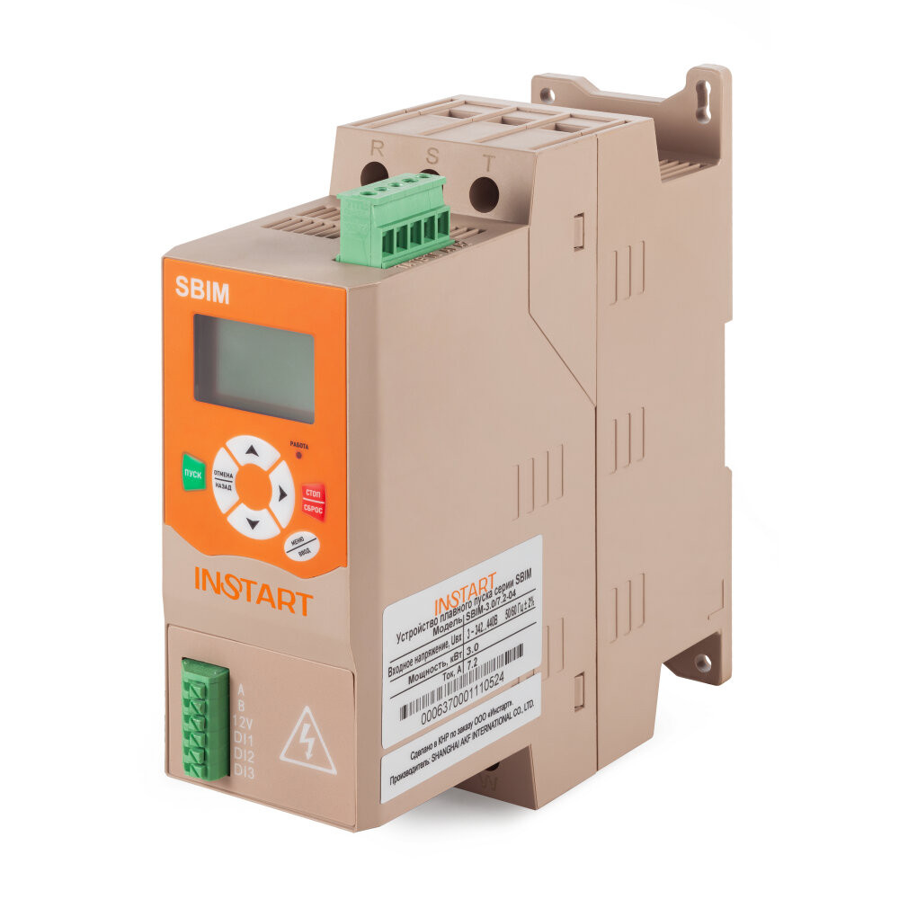 Полное описание товара Устройство плавного пуска УПП 7.5 кВт 16.0А, 3 ~ 400 380B, IP20, байпас встроен (Instart) SBIM-7.5/16-04