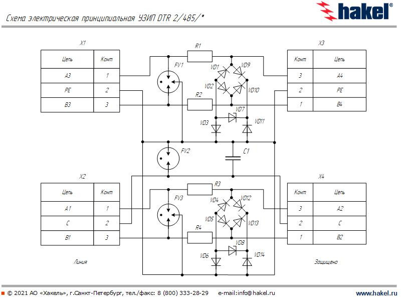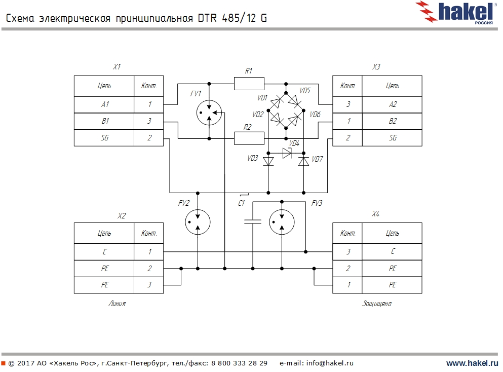 УЗИП ГРОЗОСТОП DTR 2/485/12, Uо - 12 В, IL - 250 мА, In (8/20) - 20 кА, , 10 Мбит/с (Ключевой Компонент (Хакель)) 400705