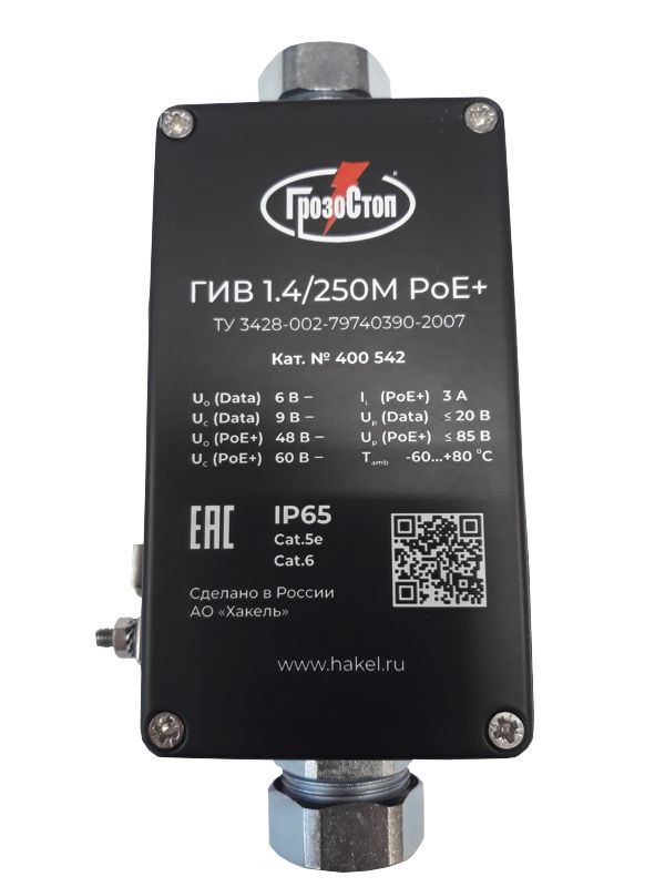 Полное описание товара УЗИП ГРОЗОСТОП ГИР 1.4/250М РоЕ+, Uо - 6 В (пары данных), Uо - 48 В (пары PoE+) IL - 3 А, In (8/20) - 1 кА (Ключевой Компонент (Хакель)) 400542n