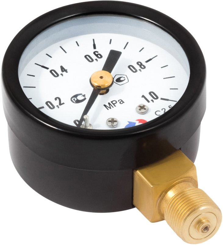 Манометр стандартный используется для измерения избыточного, вакуумметрического давления неагрессивных к медным сплавам жидких и газообразных, не вязких и не кристаллизующихся сред с температурой до 150 градусов. Корпус манометров в стандартном исполнении выполнен из стали, механизм — из латунного сплава. Принцип действия манометров основан на зависимости деформации чувствительного элемента от измеряемого давления. В качестве чувствительного элемента используется трубка Бурдона. Под воздействием измеряемого давления свободный конец трубки перемещается и с помощью специального механизма вращает стрелку манометра. Область применения: все отрасли промышленности, включая теплоснабжение, водоснабжение, вентиляцию и машиностроение.