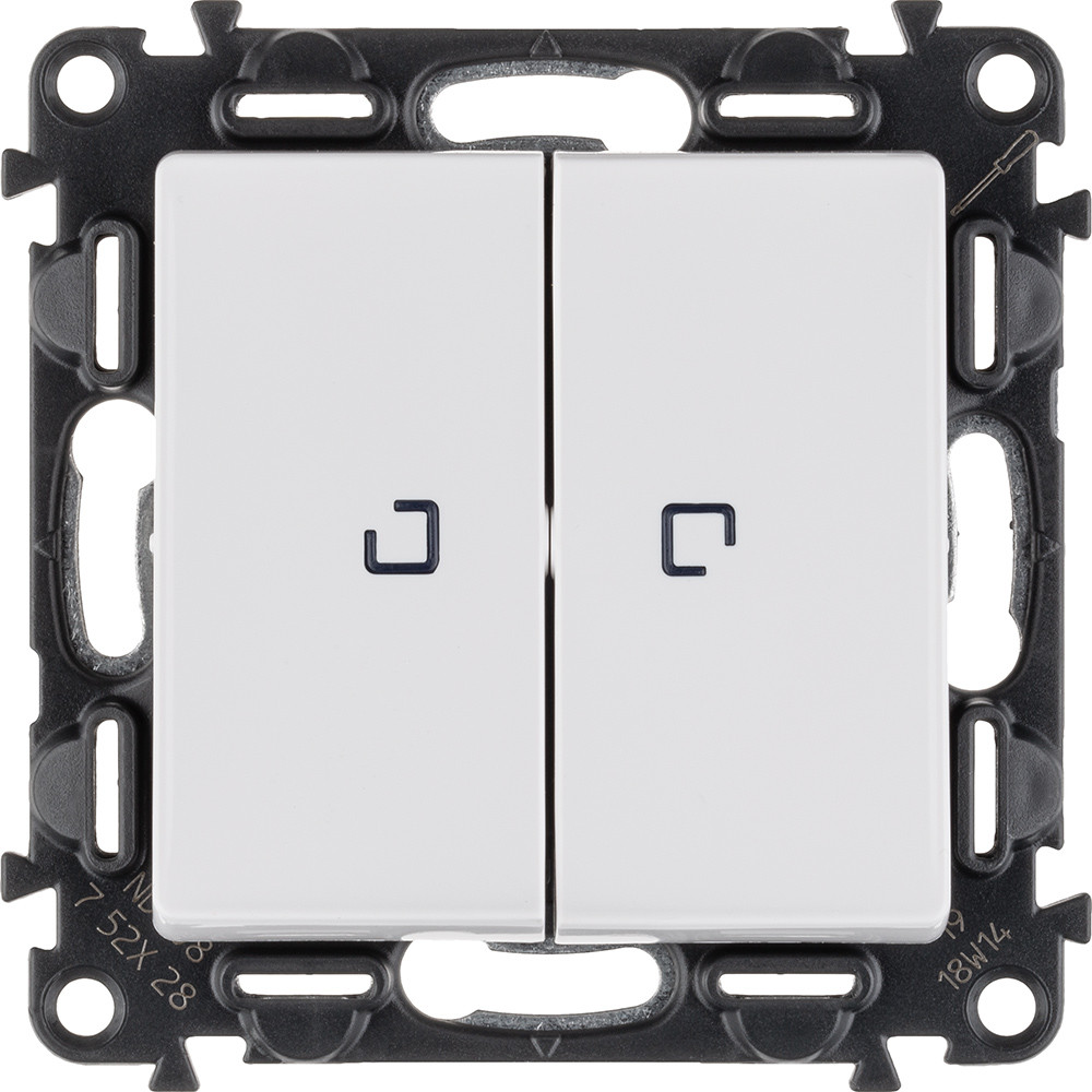 Valena LIFE.Выключатель двухклавишный 10АХ 250В с подсветкой.С лицевой панелью.Белый (Legrand/Daccord) 752428