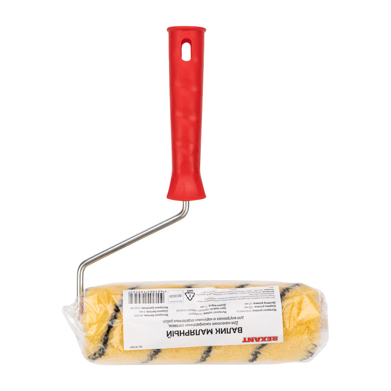 Малярный валик REXANT имеет меховое покрытие и применяется при производстве малярных работ в строительстве, предназначен для окраски поверхностей лакокрасочным составом. Валик состоит из пластмассового цилиндра, мягкой шубки, бугеля (изогнутого металлического стержня) и удобной пластиковой рукоятки. Шубка валика – универсальная ткань, которая подходит для всех видов ЛКМ, особенно хорошо подходит для алкидных эмалей. Данный вид ворса идеален для обработки шероховатых поверхностей. Облегченная конструкция рукоятки (уменьшенная толщина бугеля) сделает работу гораздо приятней, что особенно заметно, когда приходится держать инструмент на весу в течение долгого времени. Валик изготовлен по технологии Thermofusion (заводское нанесение ткани на расплавленное основание).