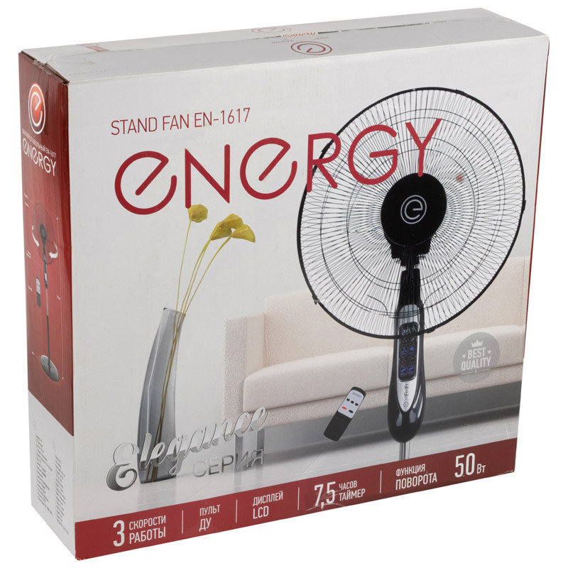 Полное описание товара Вентилятор напольн. Energy ELEGANCE EN-1617 с пульт ДУ, 16, черный, высота 1,25м, таймер, измер. темпер., 1шт/коробка (Скрап) 003717