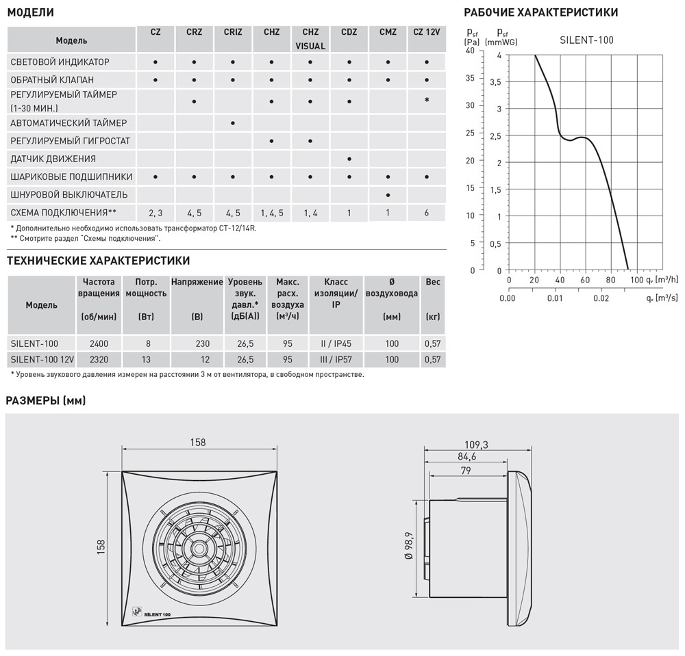 Полное описание товара Вентилятор вытяжной Silent-100 CZ (Soler & Palau) 5210400700