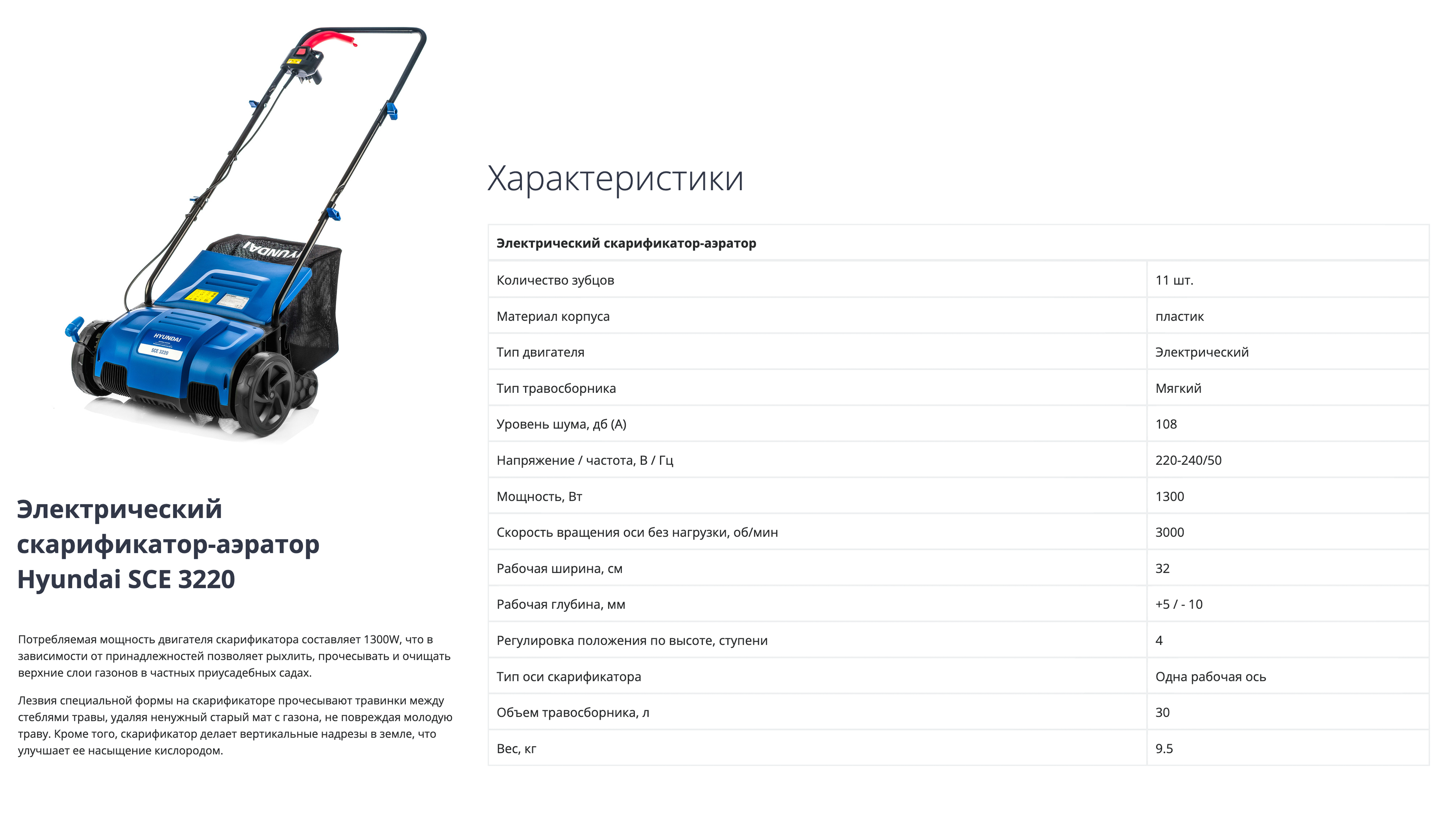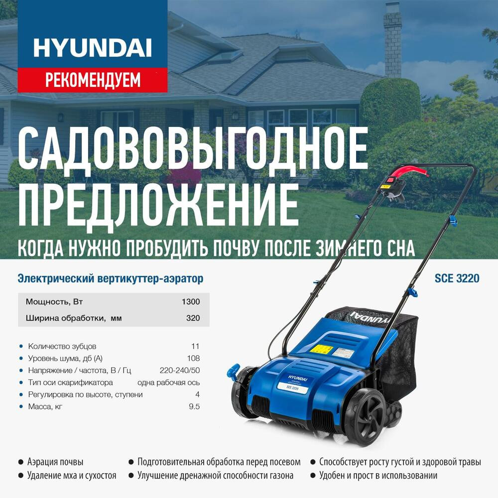 Полное описание товара Вертикуттер-аэратор электрический SCE 3220 (Hyundai Tool LTD)