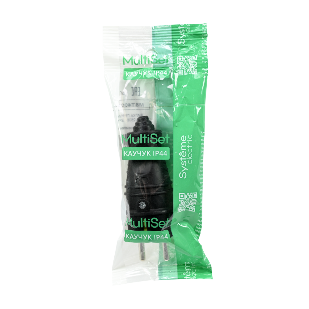 Полное описание товара Вилка 2К+З прямая каучуковая 16А/250В IP44 Чёрная MultiSet (Systeme Electric) MST4001BK