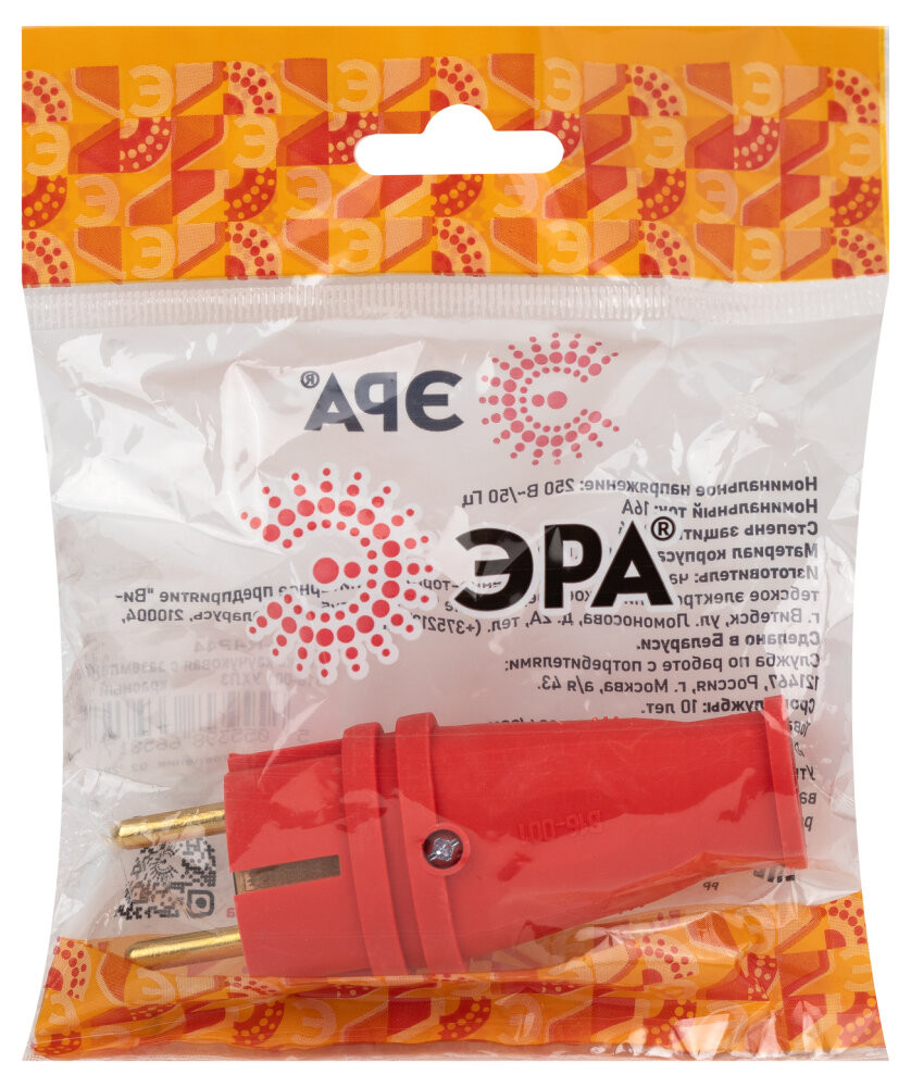 Вилка каучуковая c заземлением 16А IP44 прямая красная VX10-R-IP44 (ЭРА) Б0055415