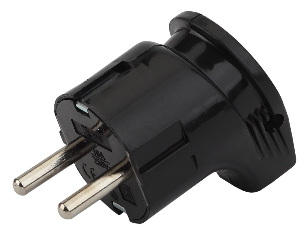 Вилка штепсельная ЭРА с заземлением, максимальная мощность - 16 A/3500 В (кабель до 3x1.5мм2), ABS-пластик.