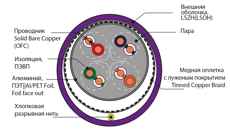 - Сфера применения: Для внутренней прокладки телеинформационных сетей