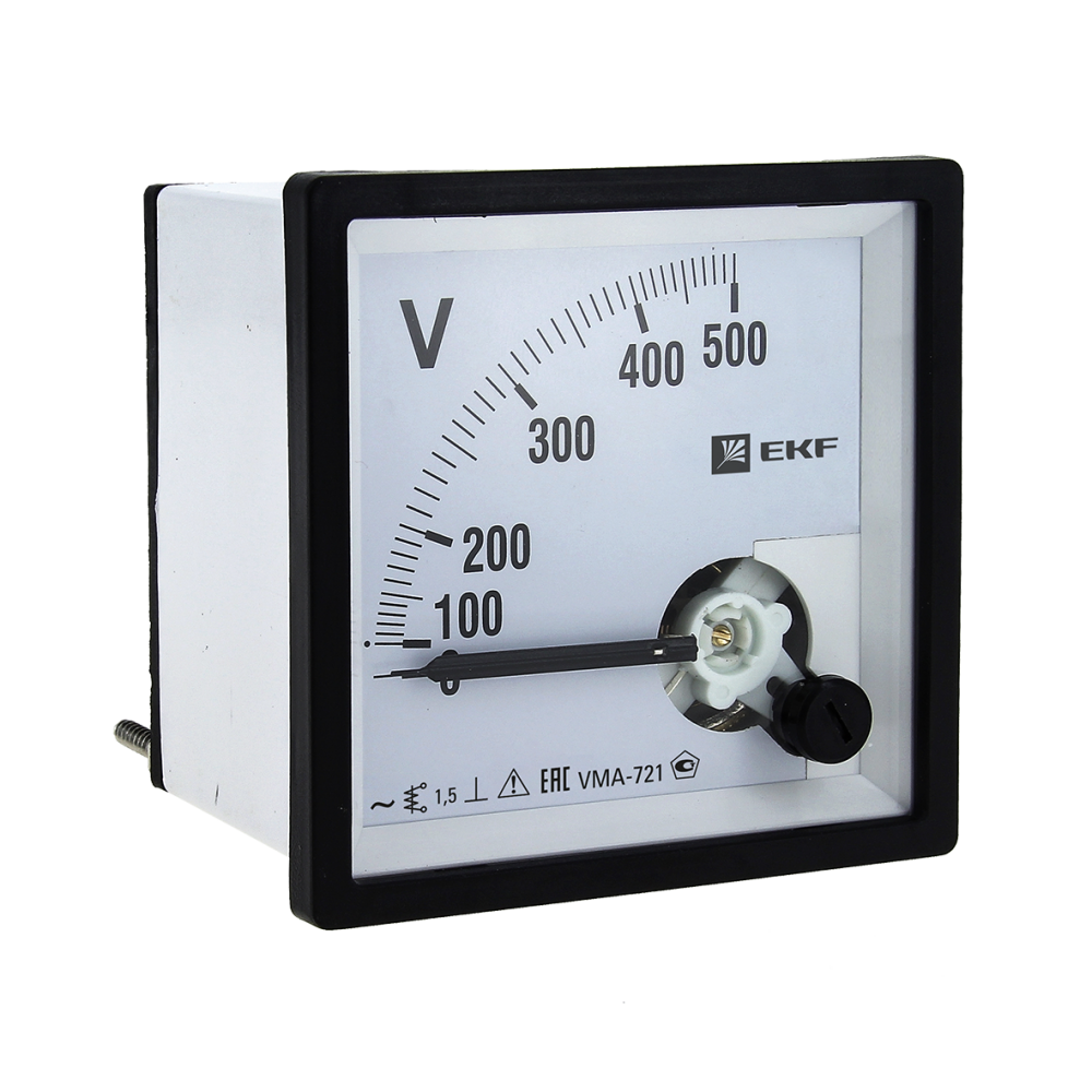 Полное описание товара Вольтметр VM-A721 аналоговый на панель 72х72 квадратный вырез 500 В прямое подключение PROxima (EKF) vma-721-500