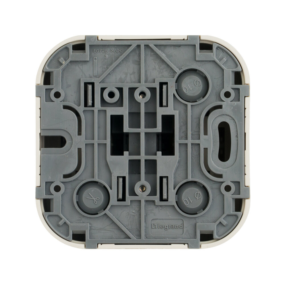 - Преимущества: Современный формат накладного монтажа|Механизм изготовлен из высококачественного поликарбоната, не проводит электрический ток, не поддерживает горение|Простое выравнивание изделий при установке в ряд, благодаря специальной форме основания|Корпус ударопрочный из пластичного полипропилена, стойкого к внешним воздействиям|Перфорация на корпусе для безошибочного вырезания отверстий при монтаже открытой проводки|В основании преднарезаны 4 отверстия для подвода кабеля при монтаже скрытой проводки