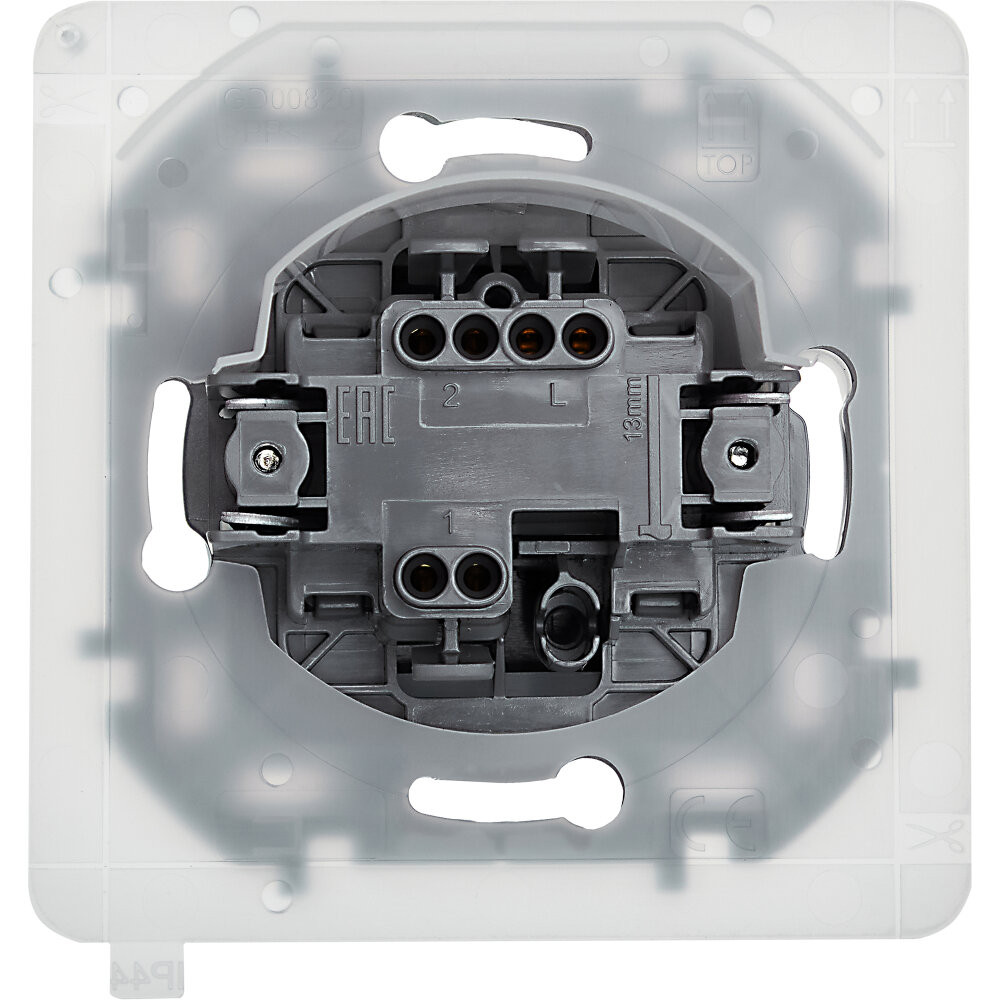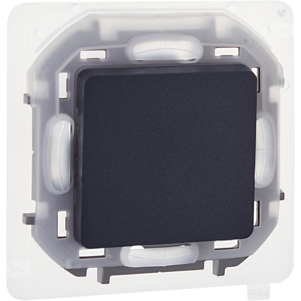 Переключатель одноклавишный IP44 скрытого монтажа Inspiria, цвет ''Антрацит'', номинальный ток 10АХ, напряжение ~250В, безвинтовые зажимы. Устанавливается в жилых и общественных помещениях для управления приборами освещения, вентиляции и т.д. Предназначен для установки в местах с повышенной влажностью (например, ванные комнаты, веранды, кладовки, подвалы, коридоры и т.п.) и используется для управления нагрузкой с одного, двух или более мест (совместно с перекрёстными переключателями).