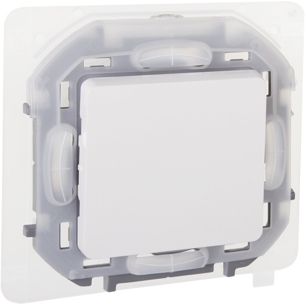 Переключатель одноклавишный IP44 скрытого монтажа Inspiria, цвет ''Белый'', номинальный ток 10АХ, напряжение ~250В, безвинтовые зажимы. Устанавливается в жилых и общественных помещениях для управления приборами освещения, вентиляции и т.д. Предназначен для установки в местах с повышенной влажностью (например, ванные комнаты, веранды, кладовки, подвалы, коридоры и т.п.) и используется для управления нагрузкой с одного, двух или более мест (совместно с перекрёстными переключателями).
