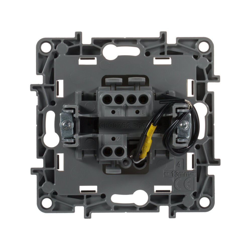 - Преимущества: Лампа подсветки светодиодная, заменяемая, цвет подсветки- белый|Благодаря изменяемой схеме подключения, лампа подсветки либо облегчает ориентирование в темноте, либо информирует о включении нагрузки|Материал клавиши AБС пластик- стоек к выгоранию и загрязнениям|Ход короткий, не громкий|Все токоведущие части выключателя имеют защиту от случайного прикосновения|Безвинтовые зажимы для присоединения проводов не требуют обслуживания