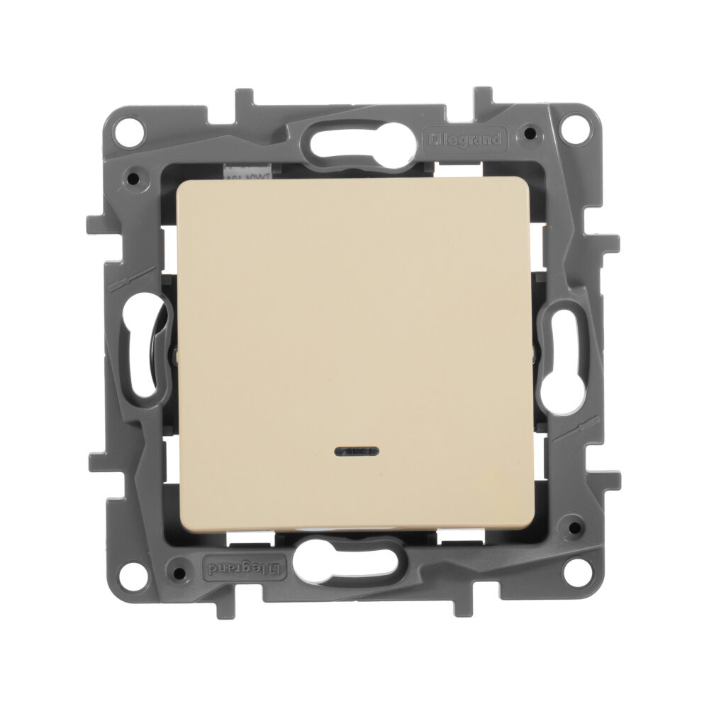 Выключатель 1-клавишный проходной с подсветкой/индикацией 10А безвинтовое крепление слоновая кость ETIKA (IEK) 672315