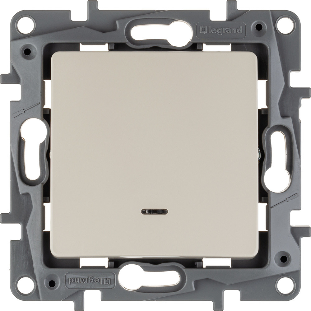 Выключатель с подсветкой одноклавишный ETIKA для скрытого монтажа, номинальный ток 10 А. Используется для управления приборами освещения, вентиляции и т.д.