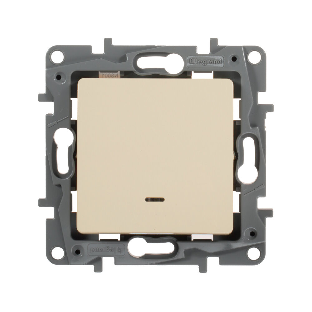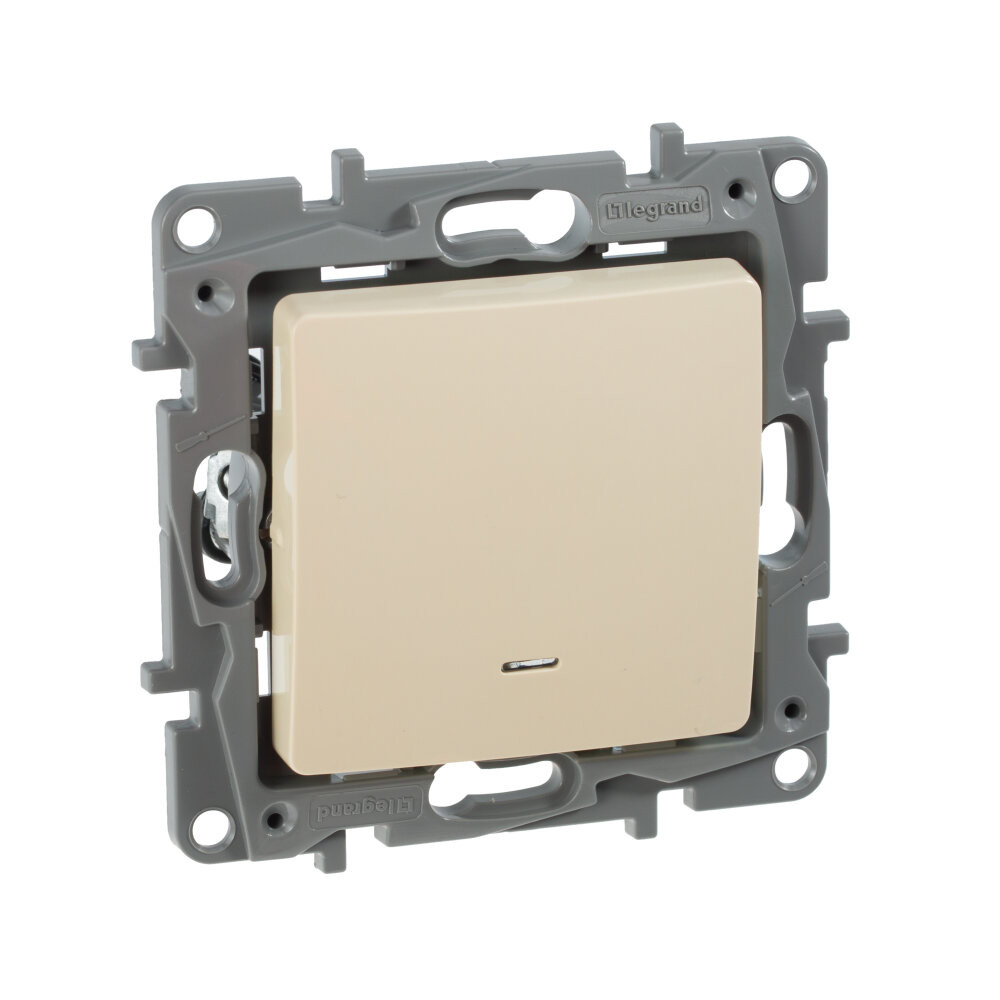 Выключатель 1-клавишный с подсветкой/индикацией 10А безвинтовое крепление слоновая кость ETIKA (IEK) 672303