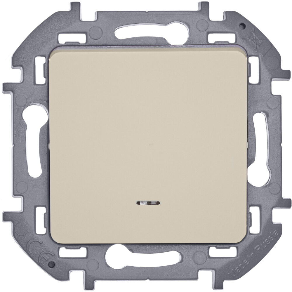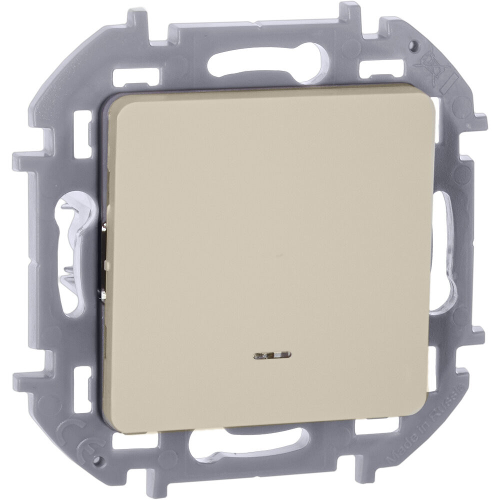 Выключатель одноклавишный с подсветкой/индикацией скрытого монтажа Inspiria, цвет ''Слоновая кость'', номинальный ток 10АХ, напряжение ~250В, безвинтовые зажимы. Устанавливается в жилых и общественных помещениях для управления приборами освещения, вентиляции и т.д.