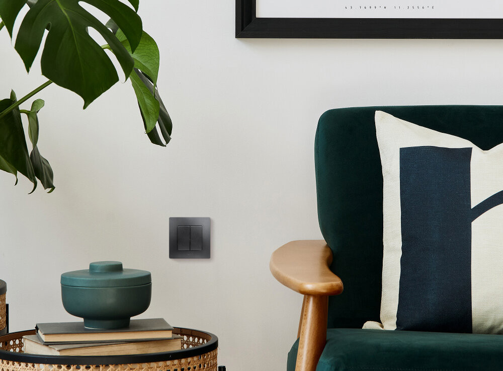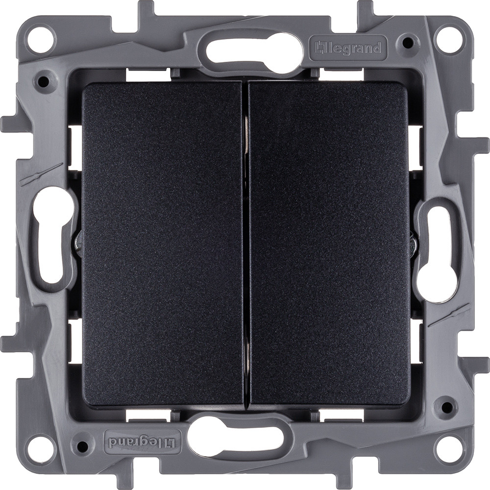 Полное описание товара Выключатель 2-клавишный 10А безвинтовое крепление антрацит ETIKA (IEK) 672602