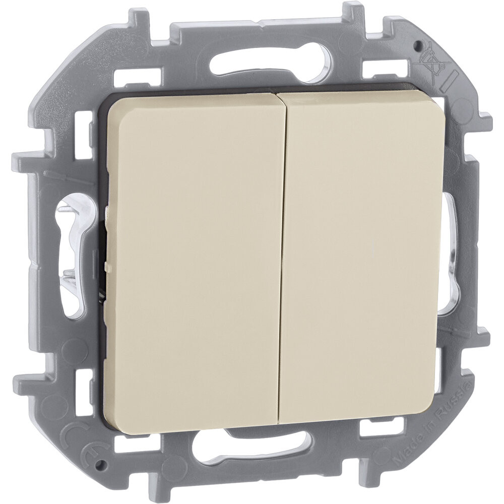 Выключатель 2-клавишный 10АХ безвинтовое крепление слоновая кость INSPIRIA (IEK) 673621