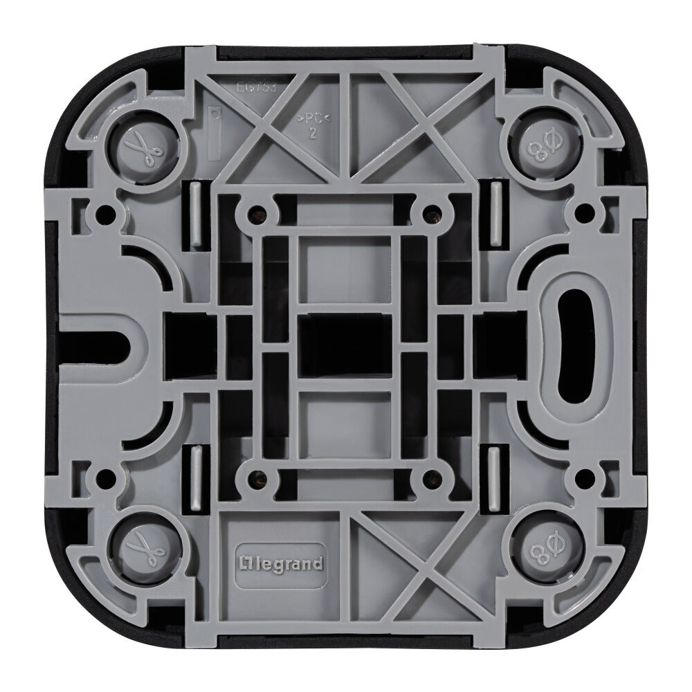 - Преимущества: Современный формат накладного монтажа|Механизм изготовлен из высококачественного поликарбоната, не проводит электрический ток, не поддерживает горение|Простое выравнивание изделий при установке в ряд, благодаря специальной форме основания|Корпус ударопрочный из пластичного полипропилена, стойкого к внешним воздействиям|Перфорация на корпусе для безошибочного вырезания отверстий при монтаже открытой проводки|В основании преднарезаны 4 отверстия для подвода кабеля при монтаже скрытой проводки