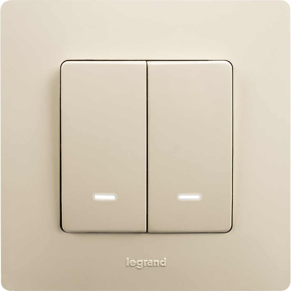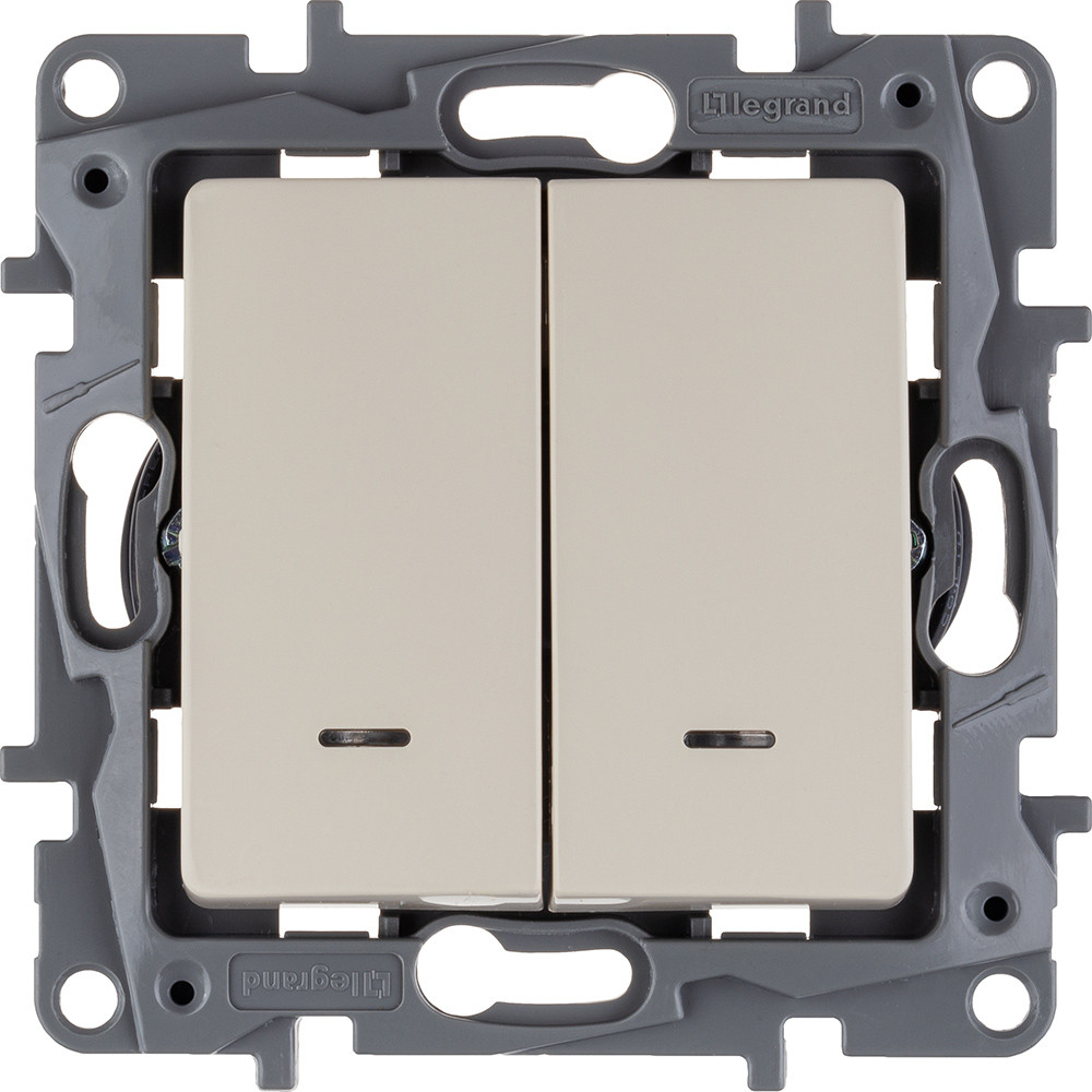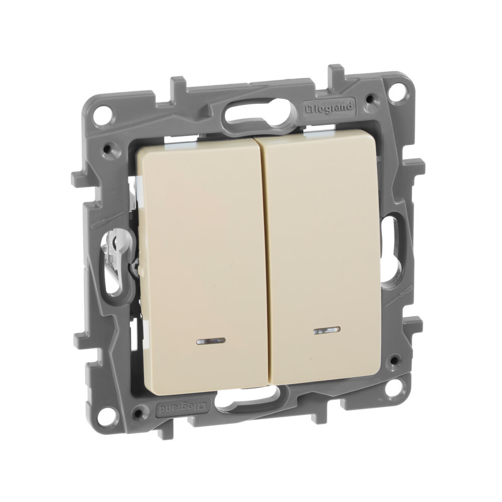 Выключатель 2-клавишный с подсветкой/индикацией 10А безвинтовое крепление слоновая кость ETIKA (IEK) 672304