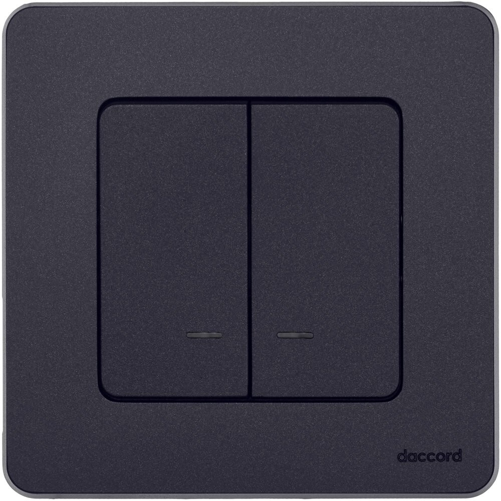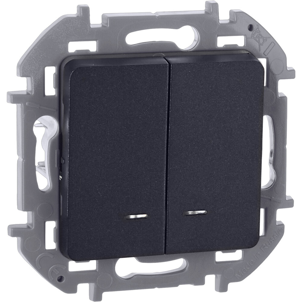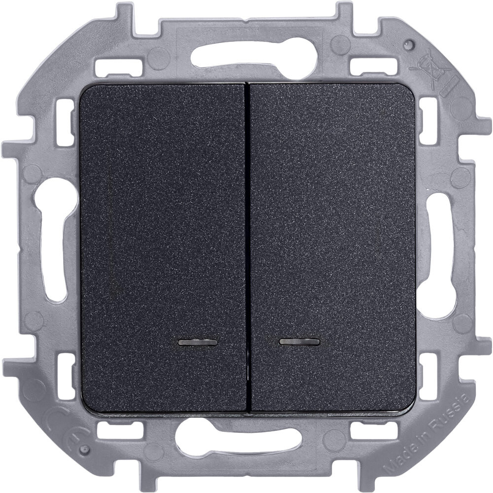 Выключатель 2-клавишный с подсветкой/индикацией 10АХ безвинтовое крепление антрацит INSPIRIA (IEK) 673633