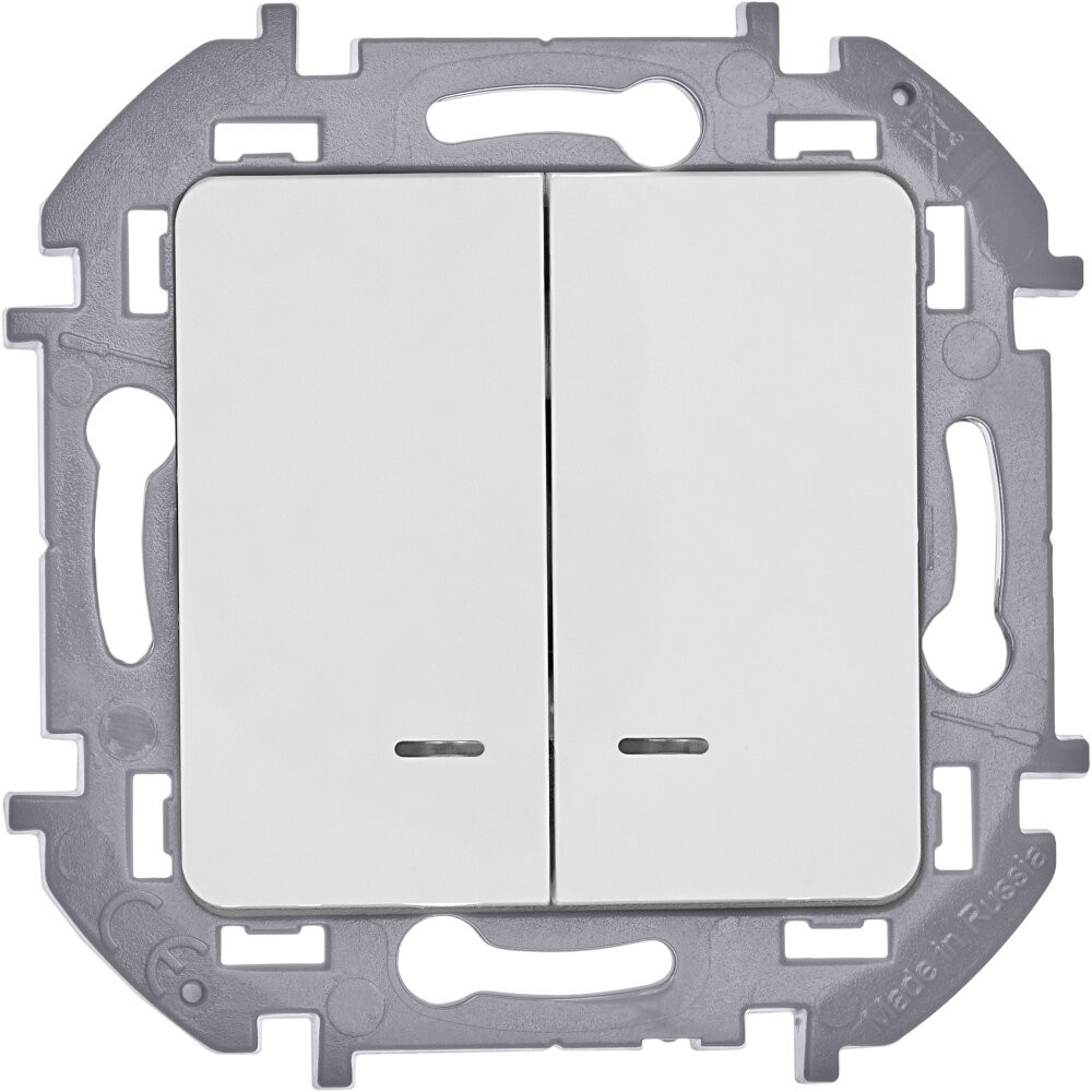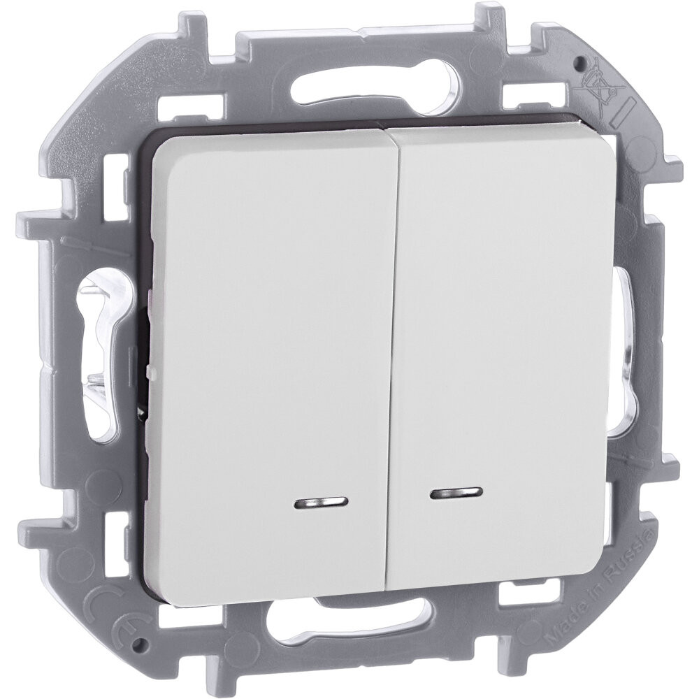 Выключатель 2-клавишный с подсветкой/индикацией 10АХ безвинтовое крепление белый INSPIRIA (IEK) 673630