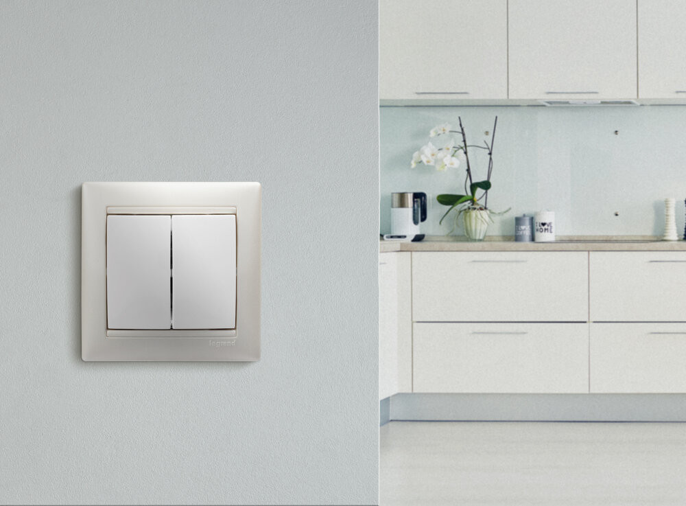 Выключатель двухклавишный VALENA для скрытого монтажа, номинальный ток 10 А, предназначен для управления двумя электрическими цепями.
