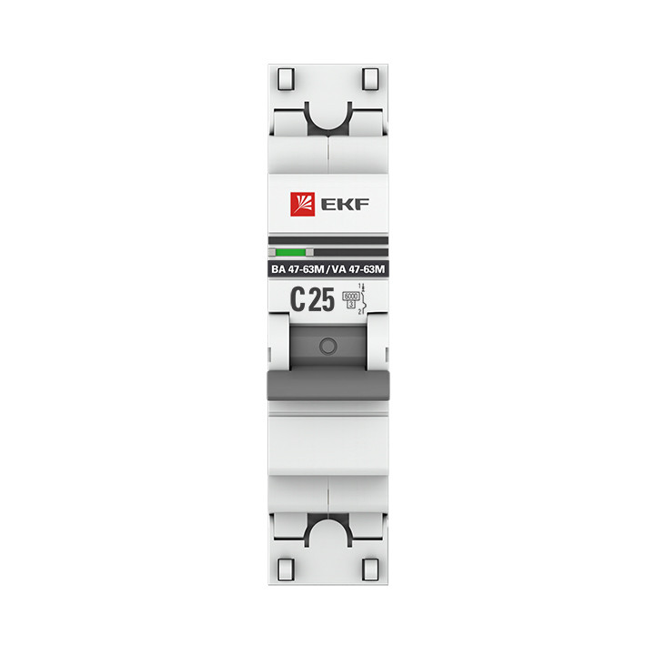 Полное описание товара Выключатель автоматический 1P 25А (C) 6кА ВА 47-63M c электромагнитным расцепителем PROxima (EKF) mcb4763m-6-1-25C-pro
