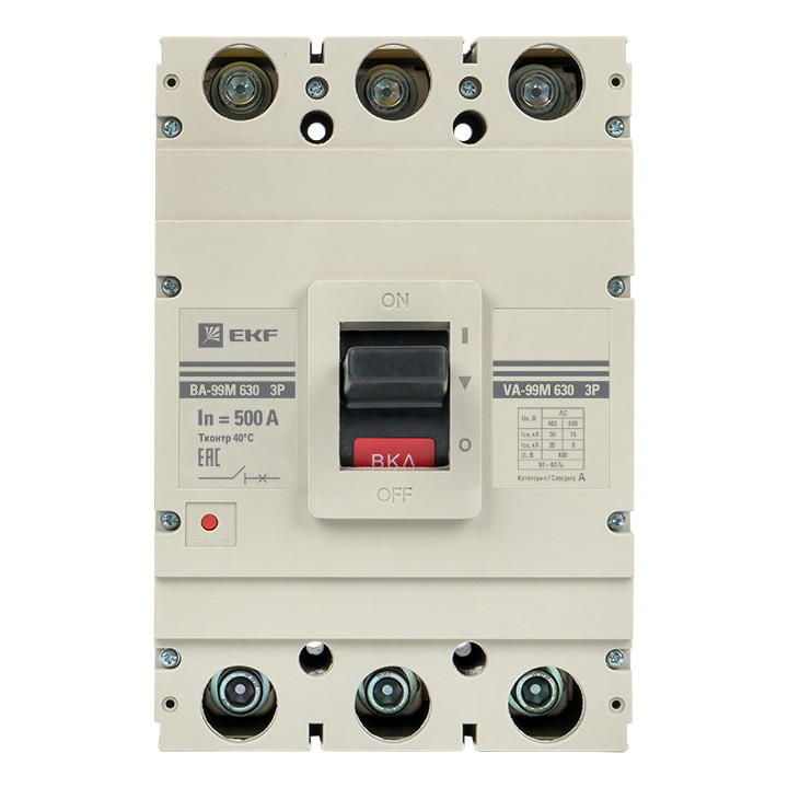 Полное описание товара Выключатель автоматический 99М 630/500А 3 фазы 50кА (EKF) mccb99-630-500m