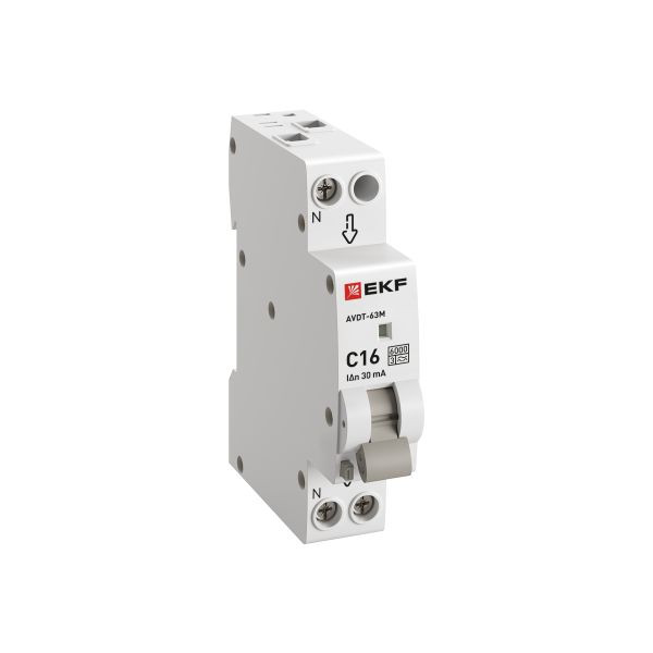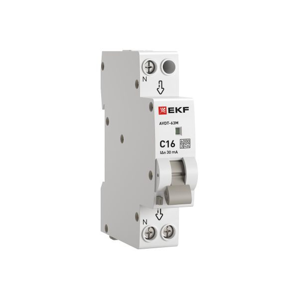 Выключатель автоматический дифференциального тока АВДТ-63М 1P+N (18 м) 16А 30мА характеристика С тип A электронный 6кА PROXIMA (EKF) D636EA16C30