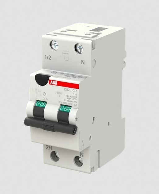 Полное описание товара Выключатель автоматический дифференциальный (АВДТ)1П+N 16A 30мА С AC 6кА DS201CR (ABB) 2CSR755080R1164